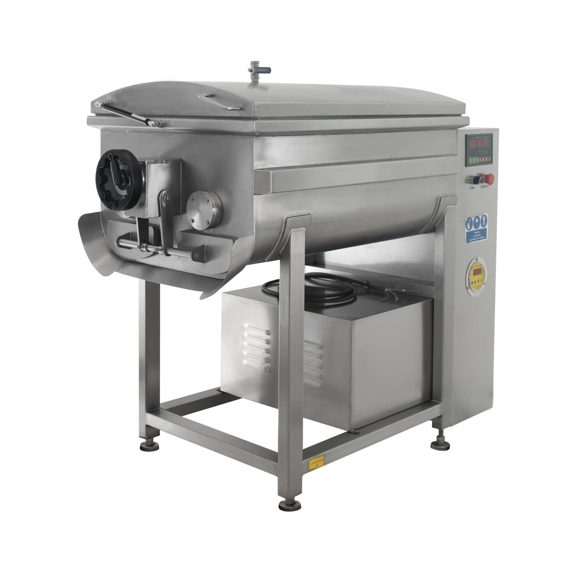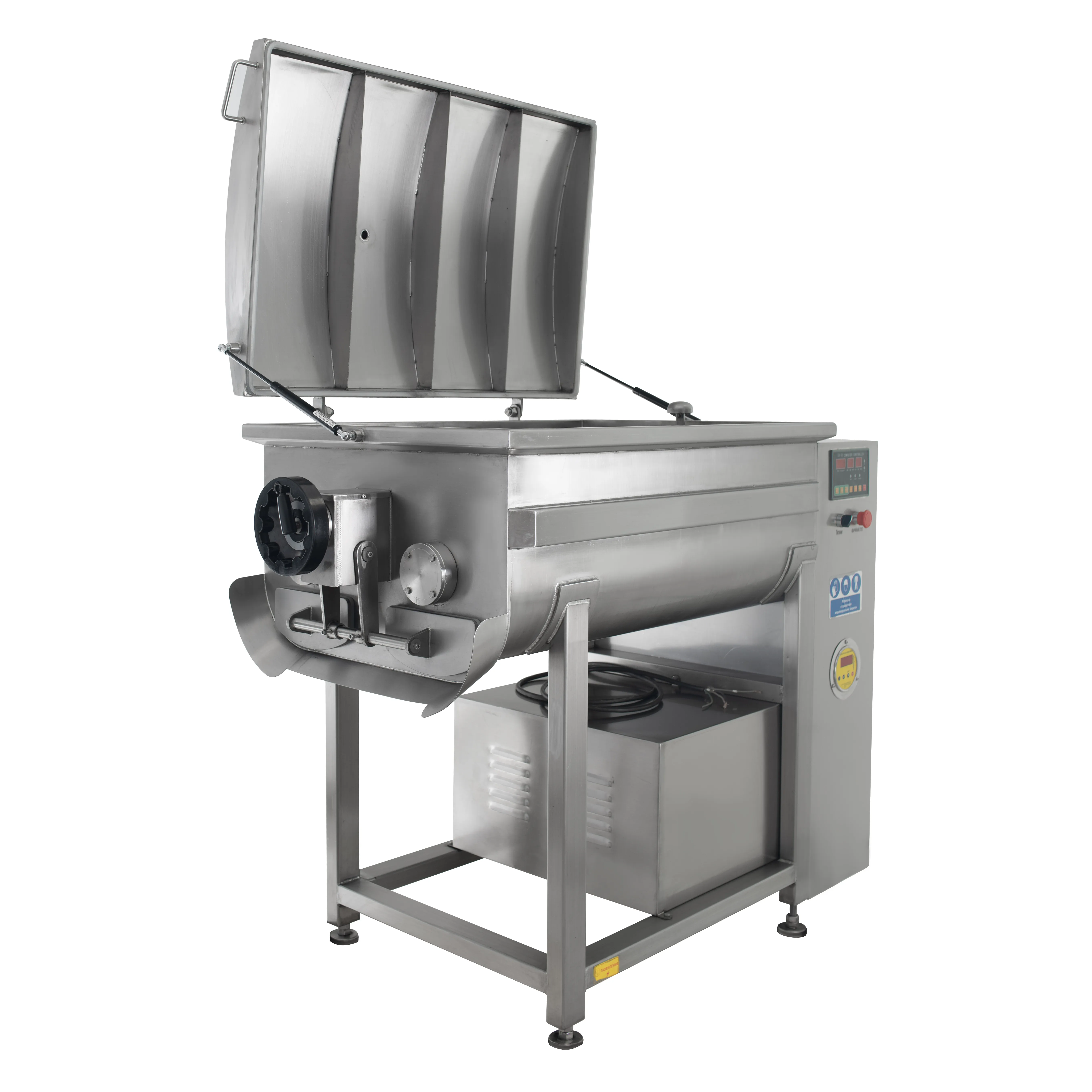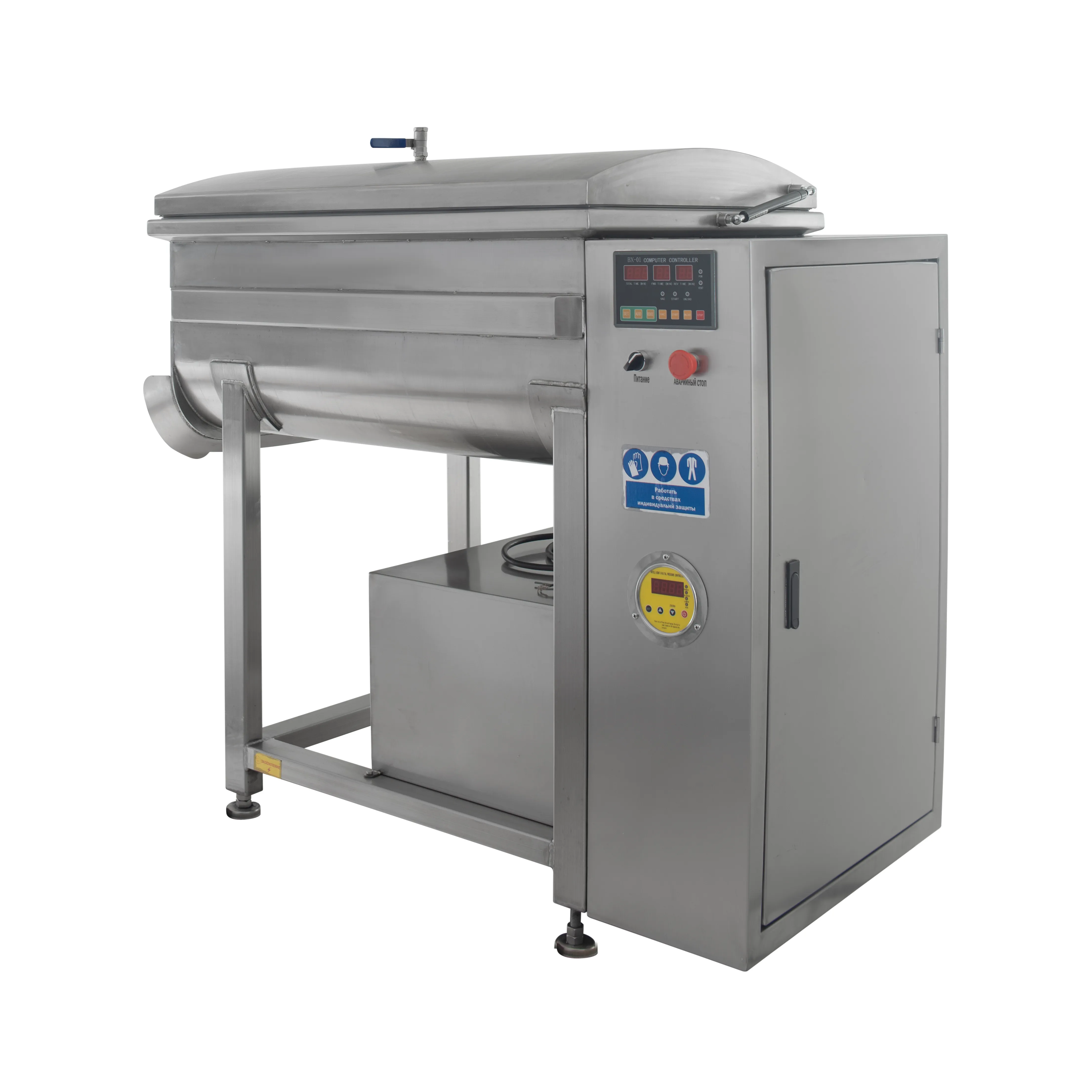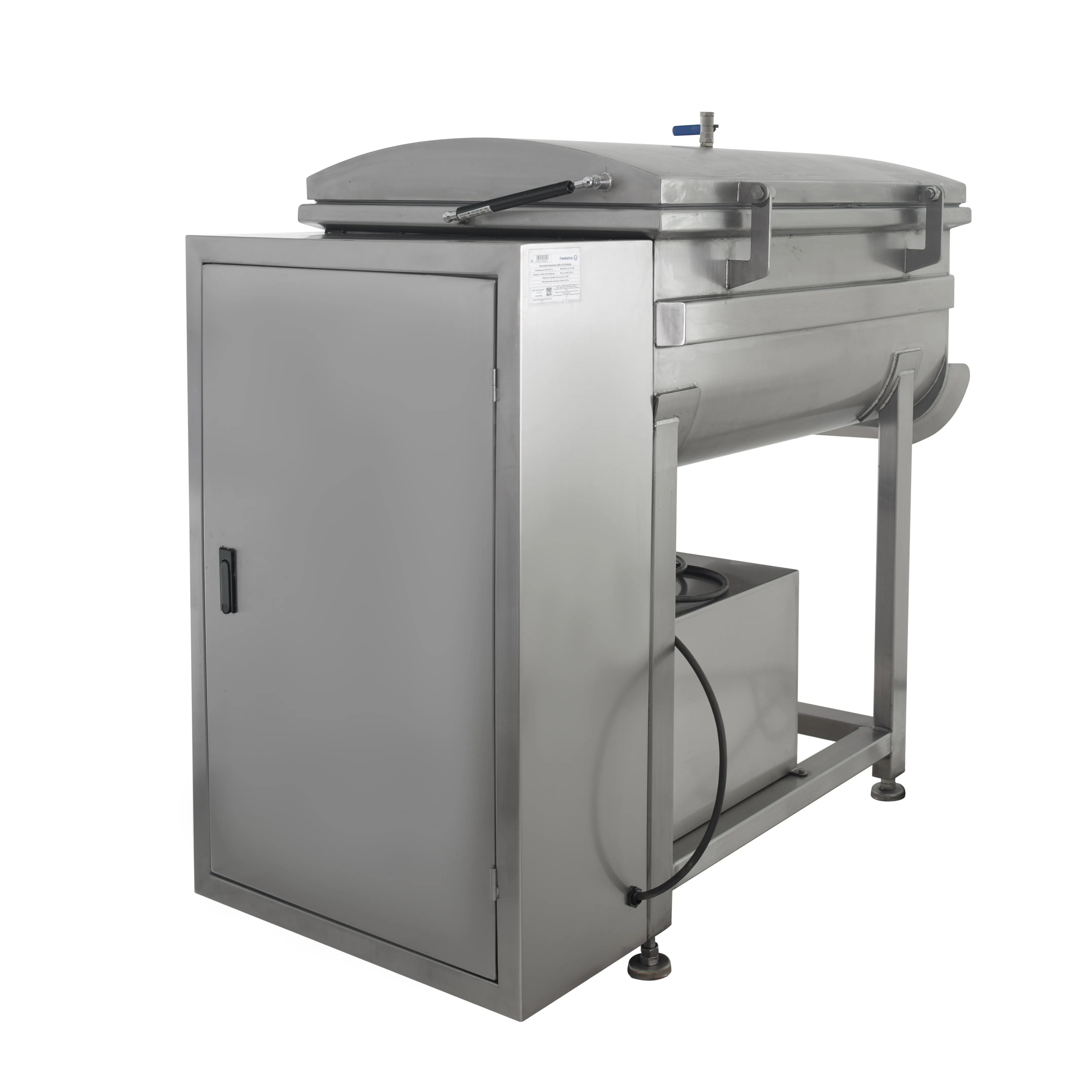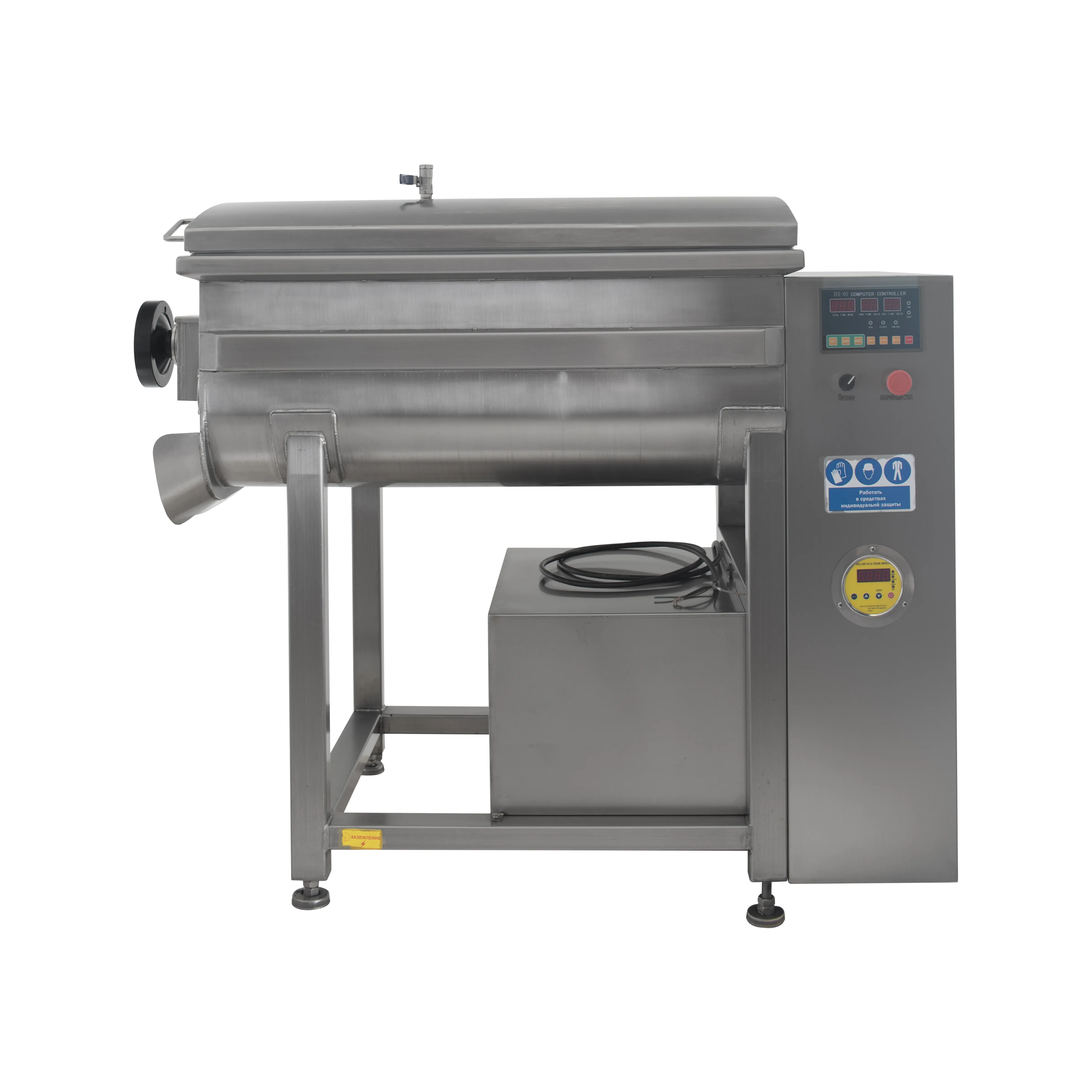Вакуумный фаршемес ZKBX-1200 Foodatlas подходит для равномерного смешивания сырья в не содержащей воздуха емкости. Вакуумный способ обработки продуктов позволяет не насыщать кислородом продукт. Такой метод занимает значительно меньше времени и при этом позволяет добиться более однородной консистенции.